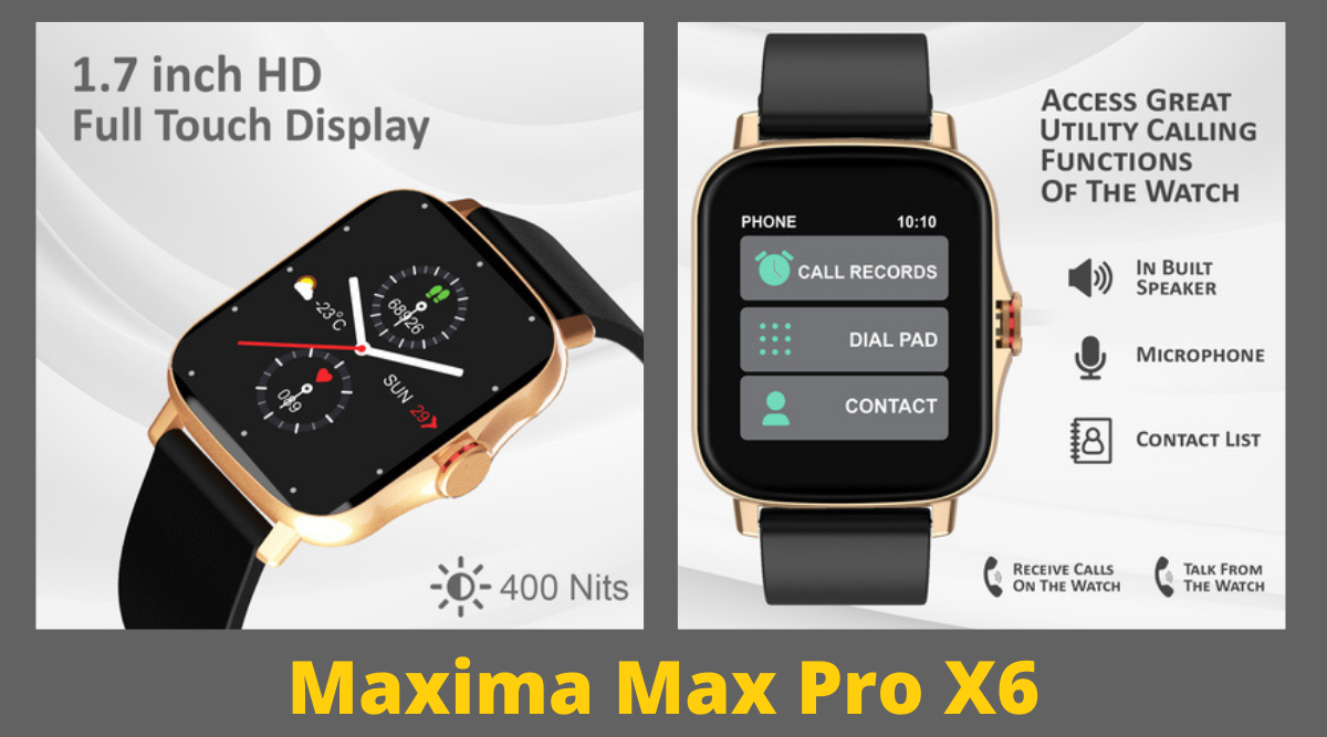 इसी बीच, मैक्सिमा (Maxima) ने मैक्स प्रो एक्स 6 (Max Pro X6) लॉन्च की है, जो कि एक कॉलिंग स्मार्ट वॉच है। कंपनी का दावा है कि इस घड़ी में 10 दिन का बैट्री बैक-अप मिलेगा, जबकि यह वॉटरप्रूफ है। इसमें 1.7 इंच की एचडी फुल टच डिसप्ले, इन बिल्ट स्पीकर्स, कॉन्टैक्ट लिस्ट, माइक्रोफोन, कॉल लेने और घड़ी के जरिए बात करने की सुविधा और कई सारे स्पोर्ट्स मोड हैं। यह घड़ी चार रंगों में आती है और इसकी कीमत फिलहाल 3999 रुपए है।