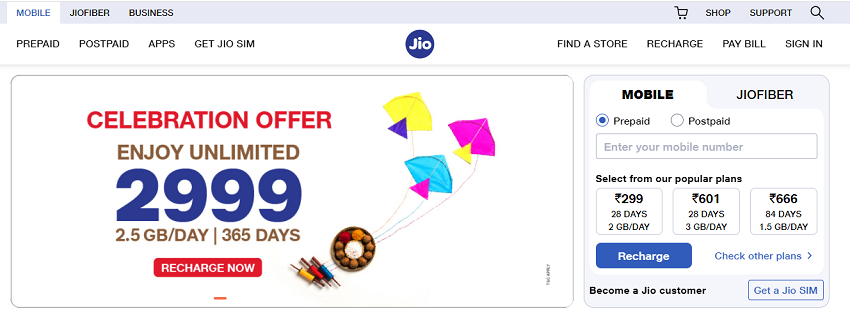 रिलायंस इंडस्ट्रीज लिमिटेड (Reliance Industries Ltd) के चेयरमैन मुकेश अंबानी की टेलीकॉम कंपनी जियो (Jio) एक नया प्लान लेकर आई है। कंपनी ने इसे “सेलीब्रेशन ऑफर” नाम दिया है, जो कि नया प्रीपेड प्लान है। माना जा रहा है कि यह असल अधिक इंटरनेट डेटा वाले लोगों के लिए उपयोगी हो सकता है।